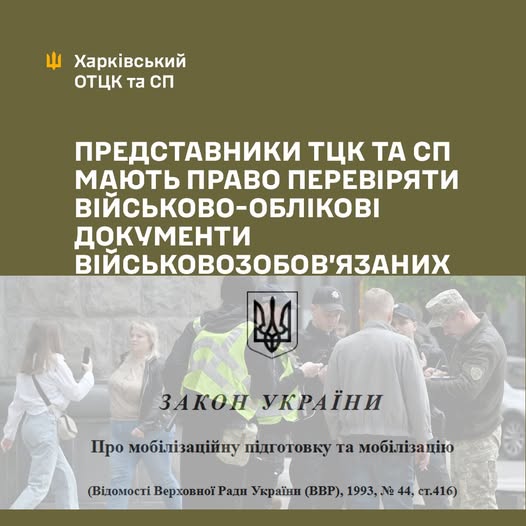 Представники територіальних центрів комплектування та соціальної підтримки мають право перевіряти військово-облікові документи військовозобов’язаних.