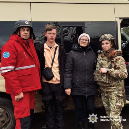 Поліцейські спецпідрозділу «Білий Янгол» і представники Червоного Хреста допомогли цій родині покинути небезпечну територію. Евакуація відбулася спокійно та безпечно.