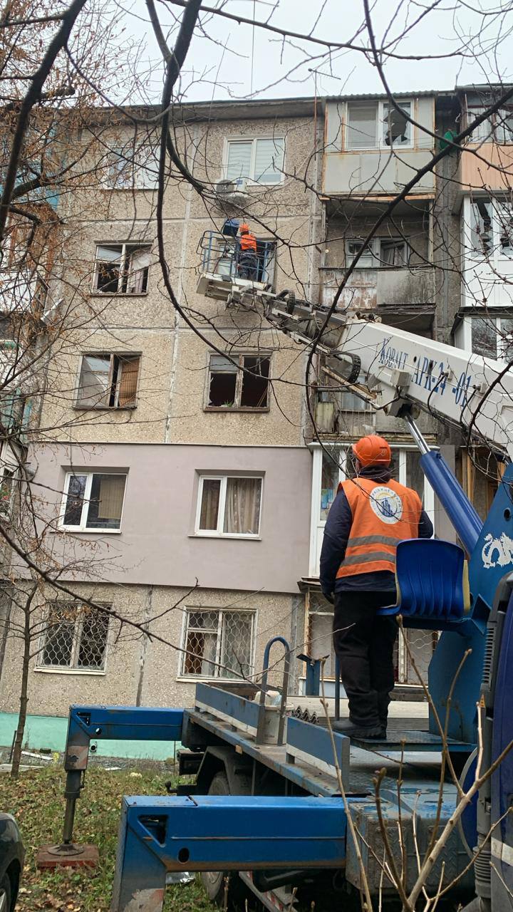 КП «Харківжитлобуд» і КП «Харківспецбуд» з ночі працюють у посиленому режимі: фахівці закривають контури будинків, пошкоджених внаслідок нічної атаки.