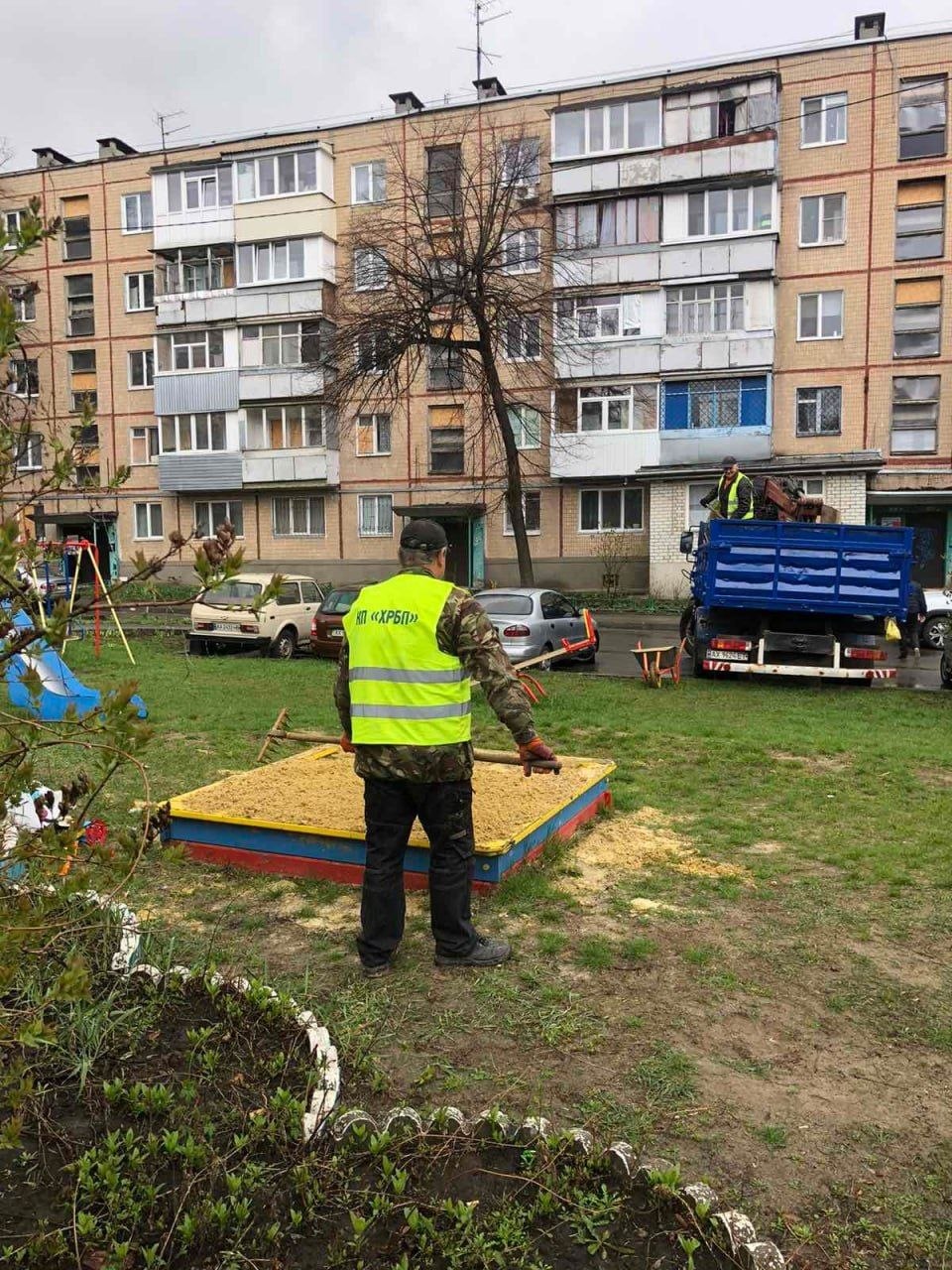 Фахівці ремонтують елементи дитячих і спортивних майданчиків, а також завозять пісок до пісочниць у Салтівському, Немишлянському та Київському районах.