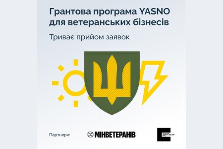Триває приймання заявок на грантову програму для ветеранського бізнесу від YASNO. Переможцям програми компенсують кошти, сплачені за 30 тис. кВт∙год, що дасть змогу зекономити близько 300 тис. грн. Проєкт реалізується за підтримки Українського ветеранського фонду Мінветеранів.