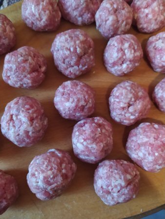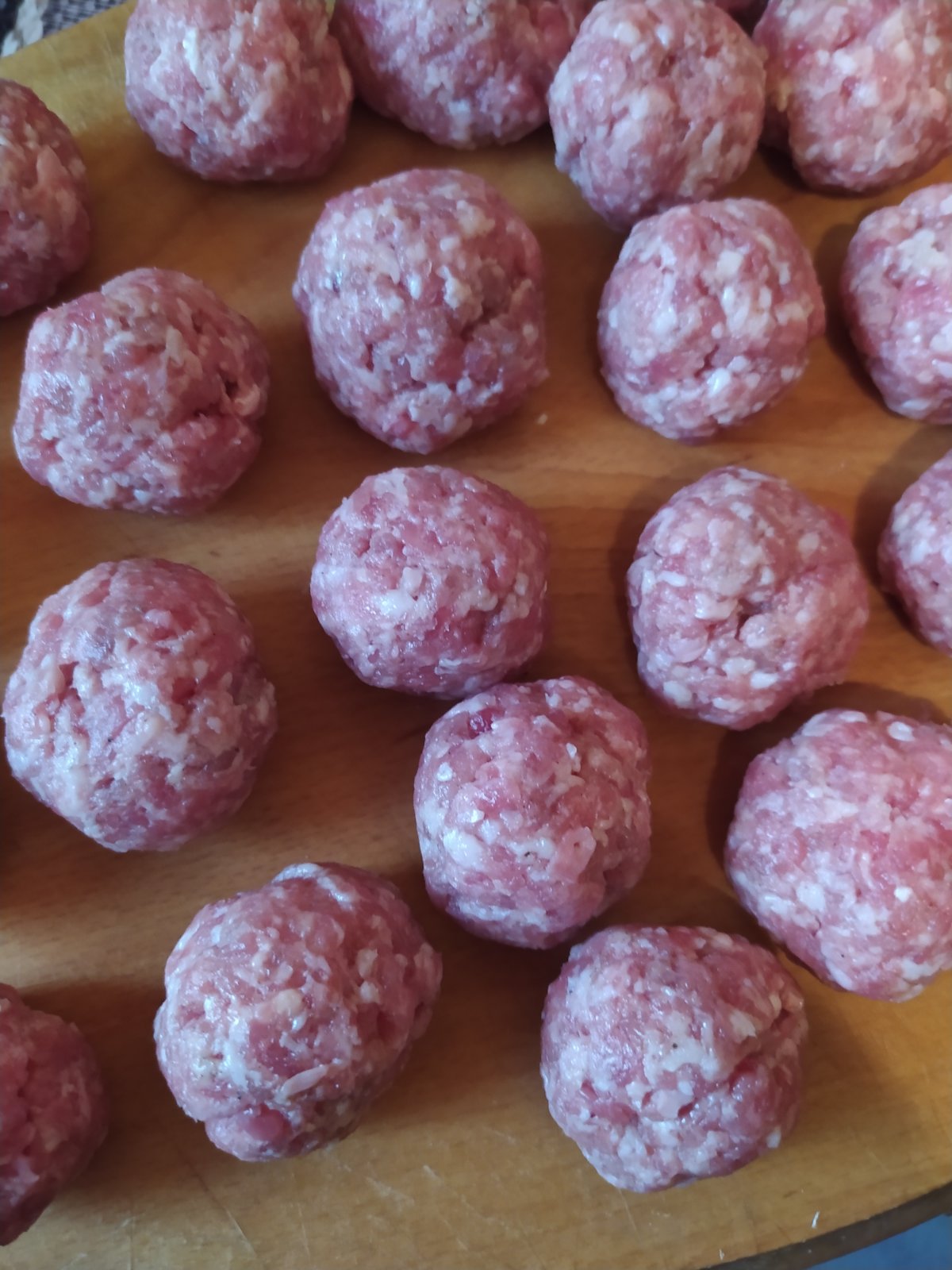 До м'ясного фаршу додаємо сіль, чорний мелений перець, паприку. Добре перемішуємо та формуємо фрикадельки. Руки можна змастити олією, щоб фарш не лип.