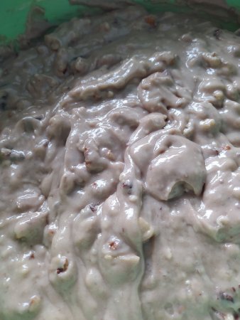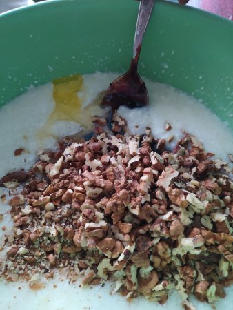 Добре розмішати і додати борошно. Борошна потрібно стільки, щоб тісто було схоже на густу сметану.