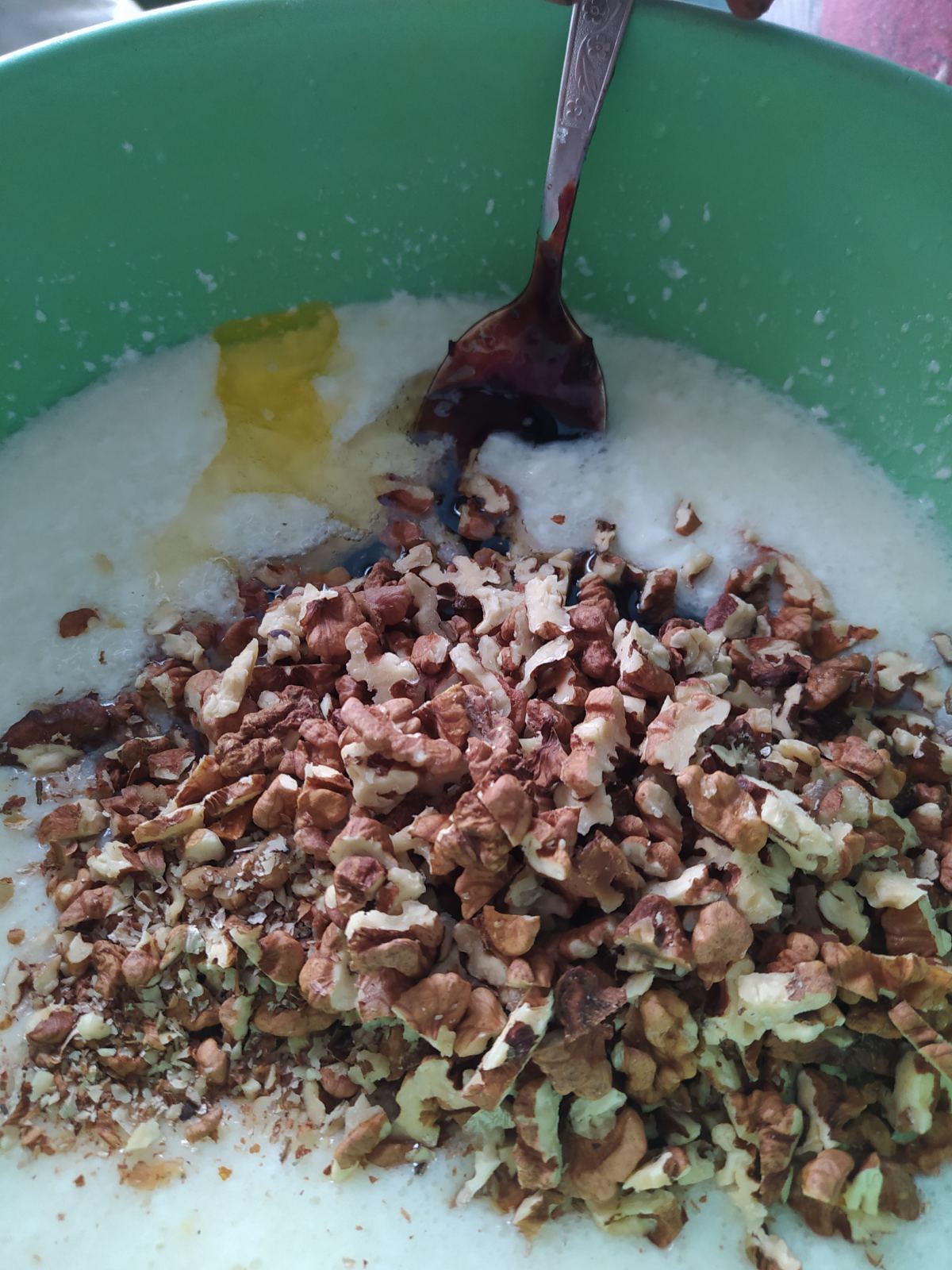 Духовку розігріти до 180 градусів та випекти кекс до готовності.