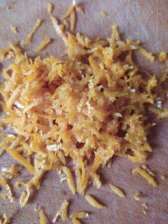З апельсинів зняти цедру. Частину залишити для декору. Решта піде у тісто.