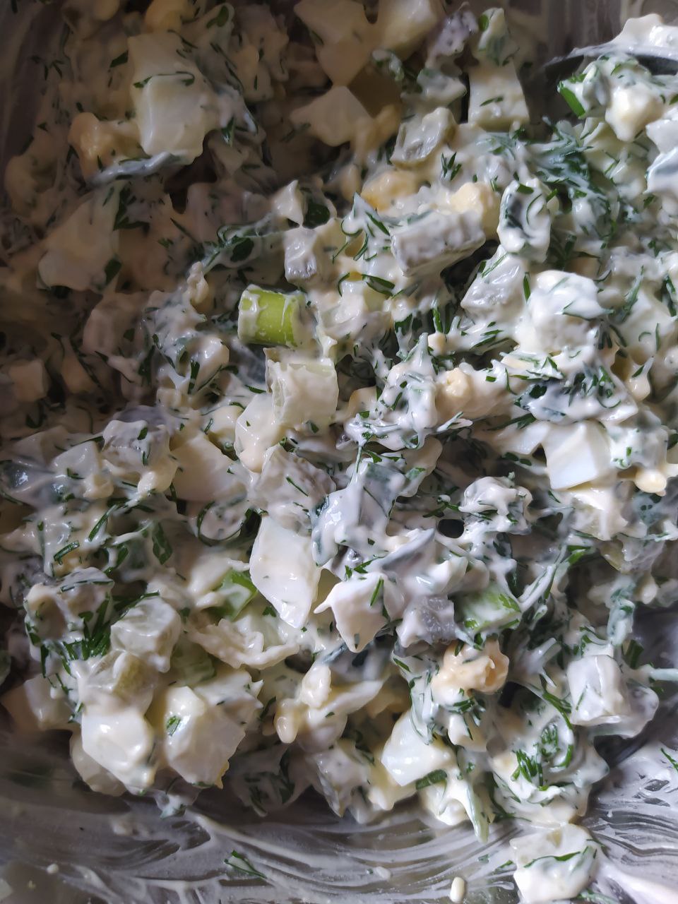 Додати майонез або сметану. Перемішати. При потребі підсолити.