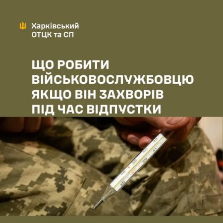 Якщо військовослужбовець захворів під час відпустки і не може вчасно повернутися на службу, він повинен негайно повідомити орган управління Служби правопорядку в гарнізоні (ВСП) або ТЦК та СП.